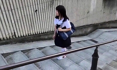 Little japanese schoolgirl felled up by old male