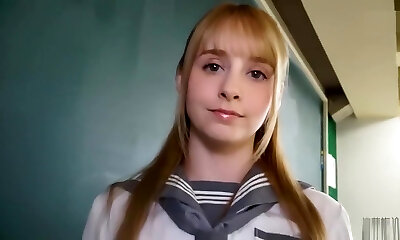 Pretty 18yearold redheaded cutie, Ashlyn Rae, wearing a conservative students uniform, shortly has