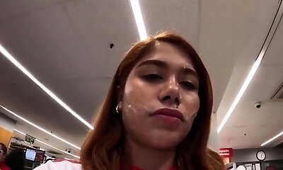 Asian babe gets facial cumshot cumshot outdoor after sucking beef whistle and getting fingered
