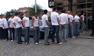 Slutty brunette screwed hard by 30 folks in this gangbang film