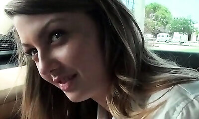After gargling in the car Luna Rival decides to fuck without mercy