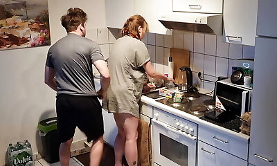 German all-natural plump girlfriend wants her boyfriend to have sex in the kitchen